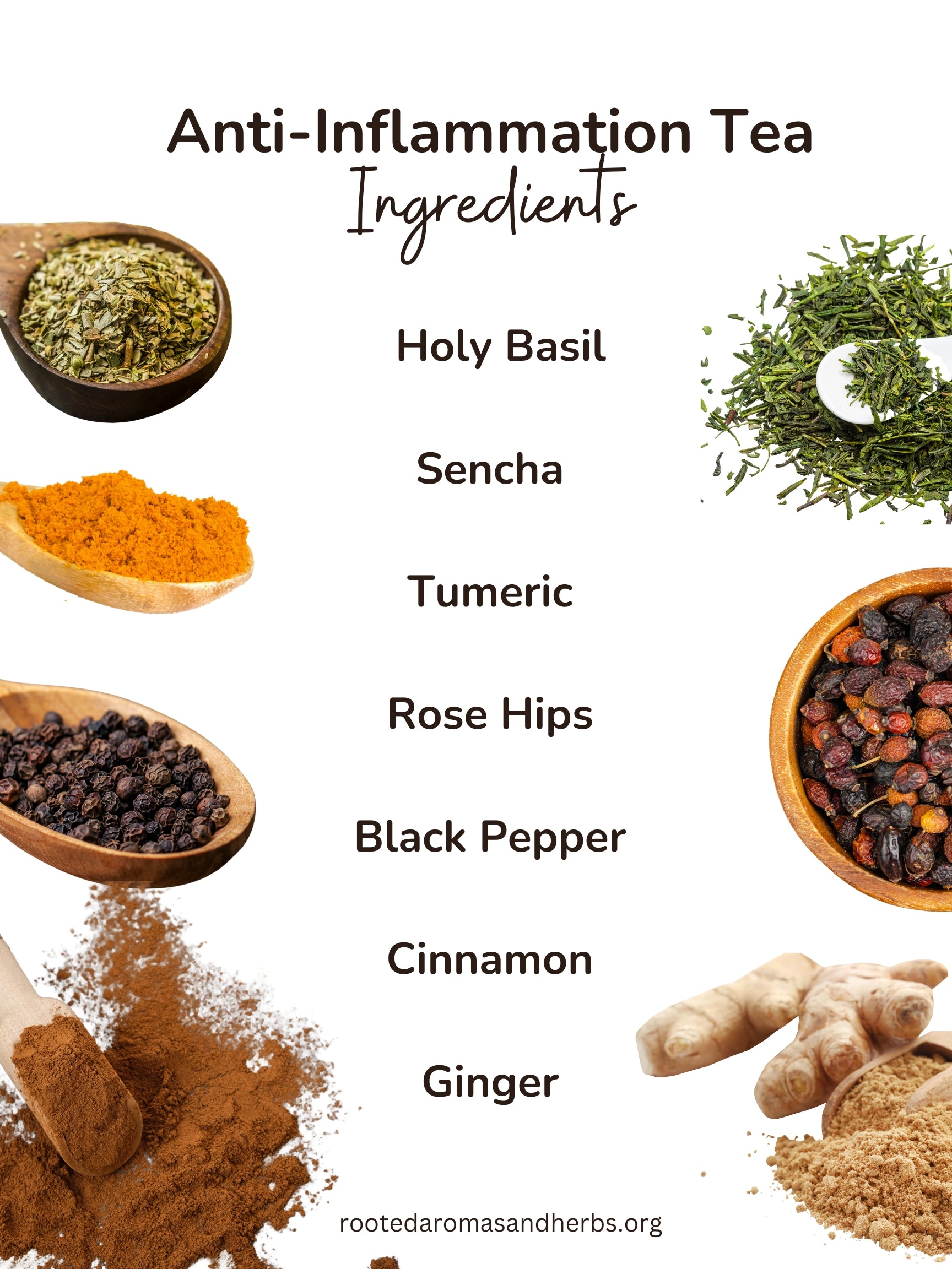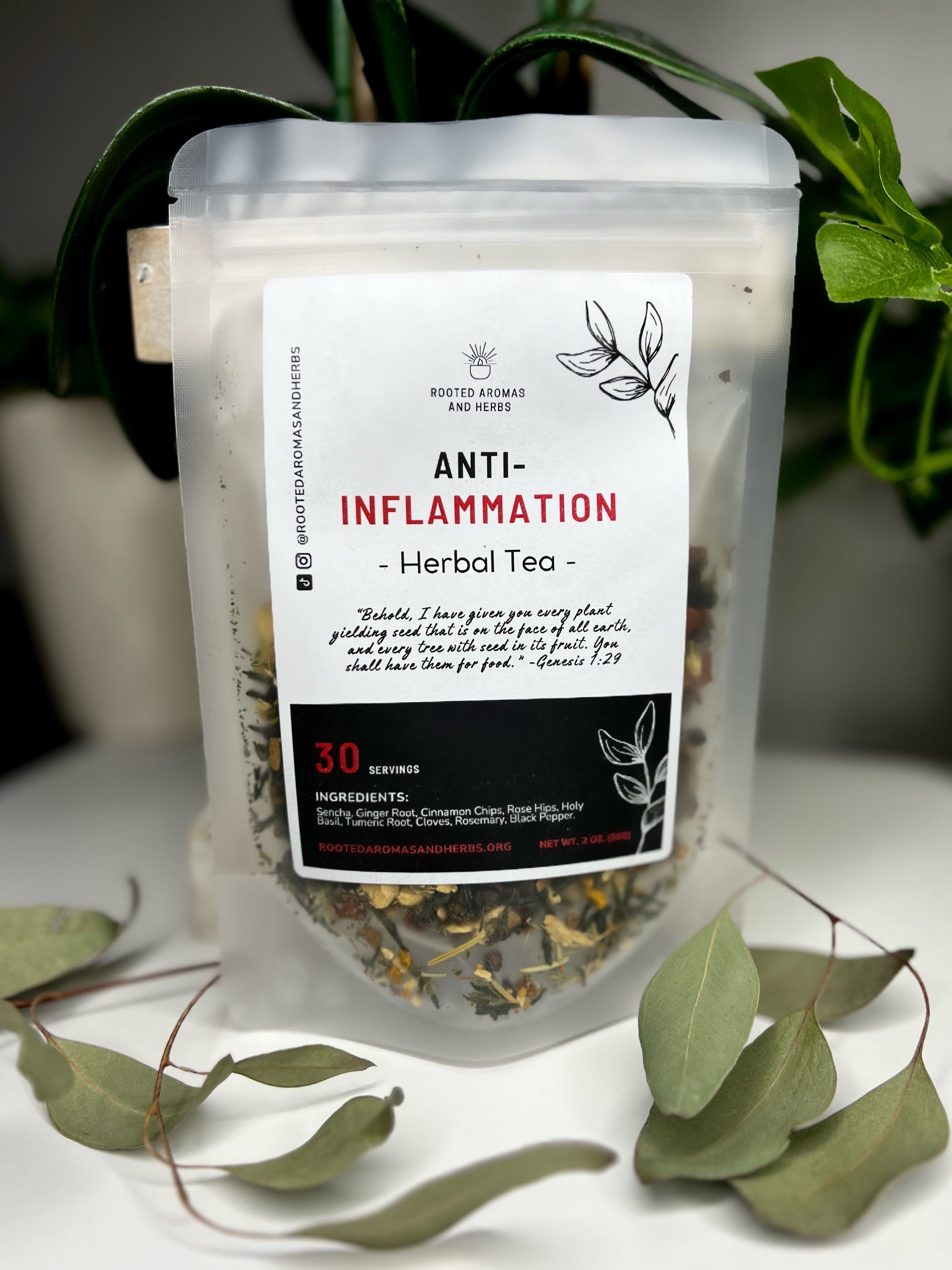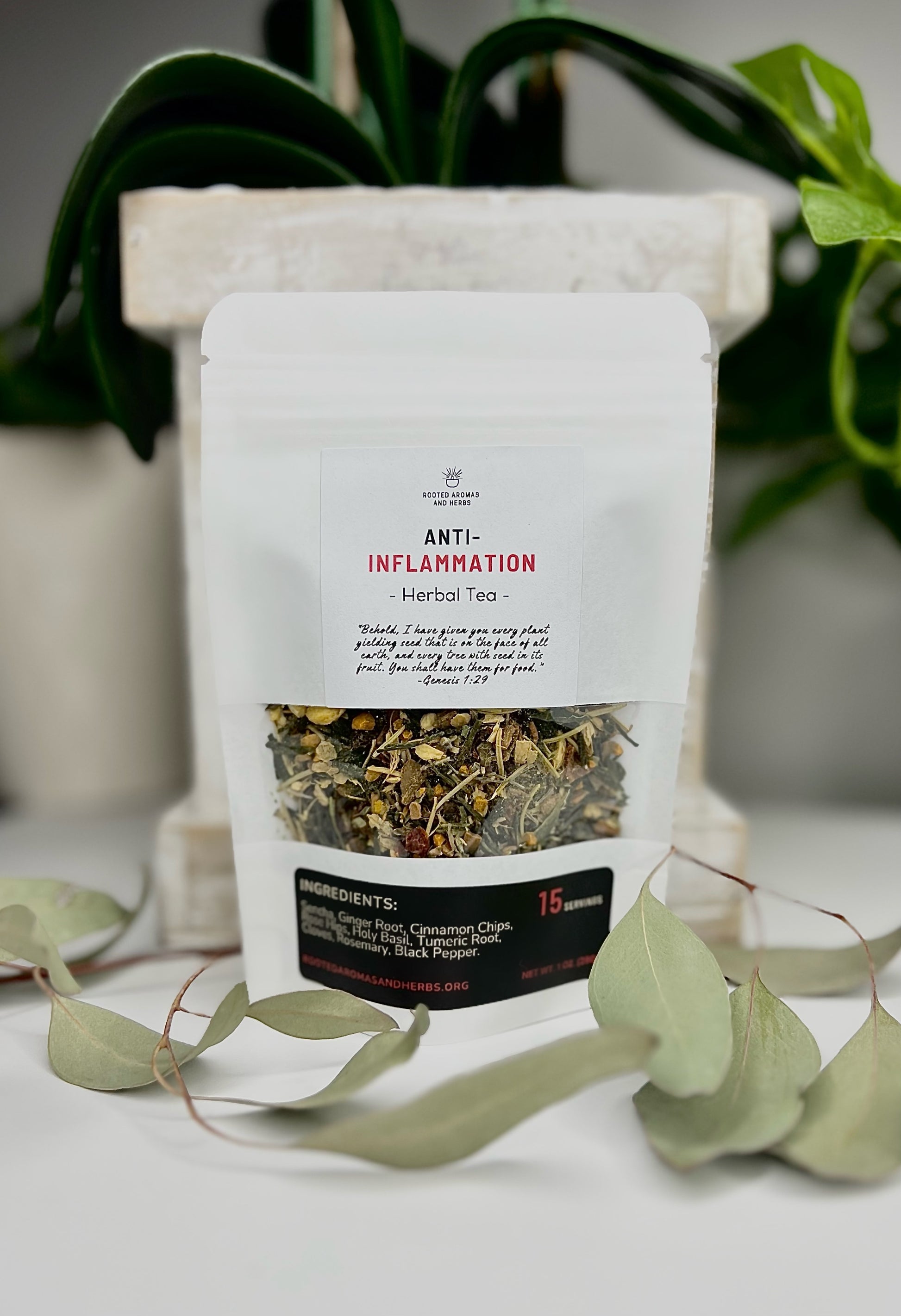 Anti-inflammation tea is an herbal blend containing antioxidants and polyphenols, which are known to have potential benefits in reducing the effects of chronic inflammation. This natural tea is believed to support overall wellness and may contribute to pain management.*