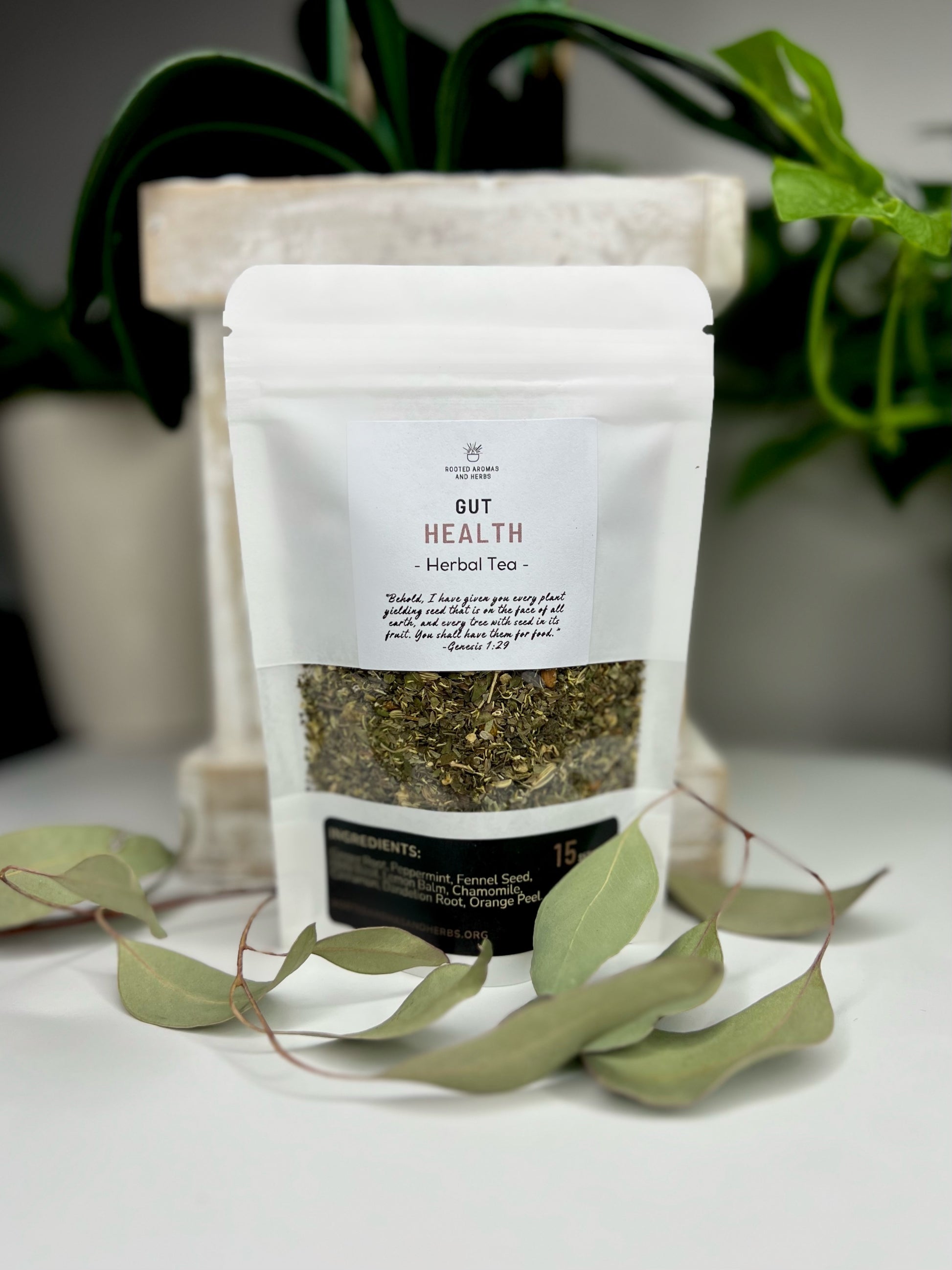 Gut Health is an herbal blend that may alleviate bloating and support the digestive system. This blend includes specific herbs that may help to reduce inflammation and ease digestive discomfort. For best results, enjoy a cup of tea after a meal.*